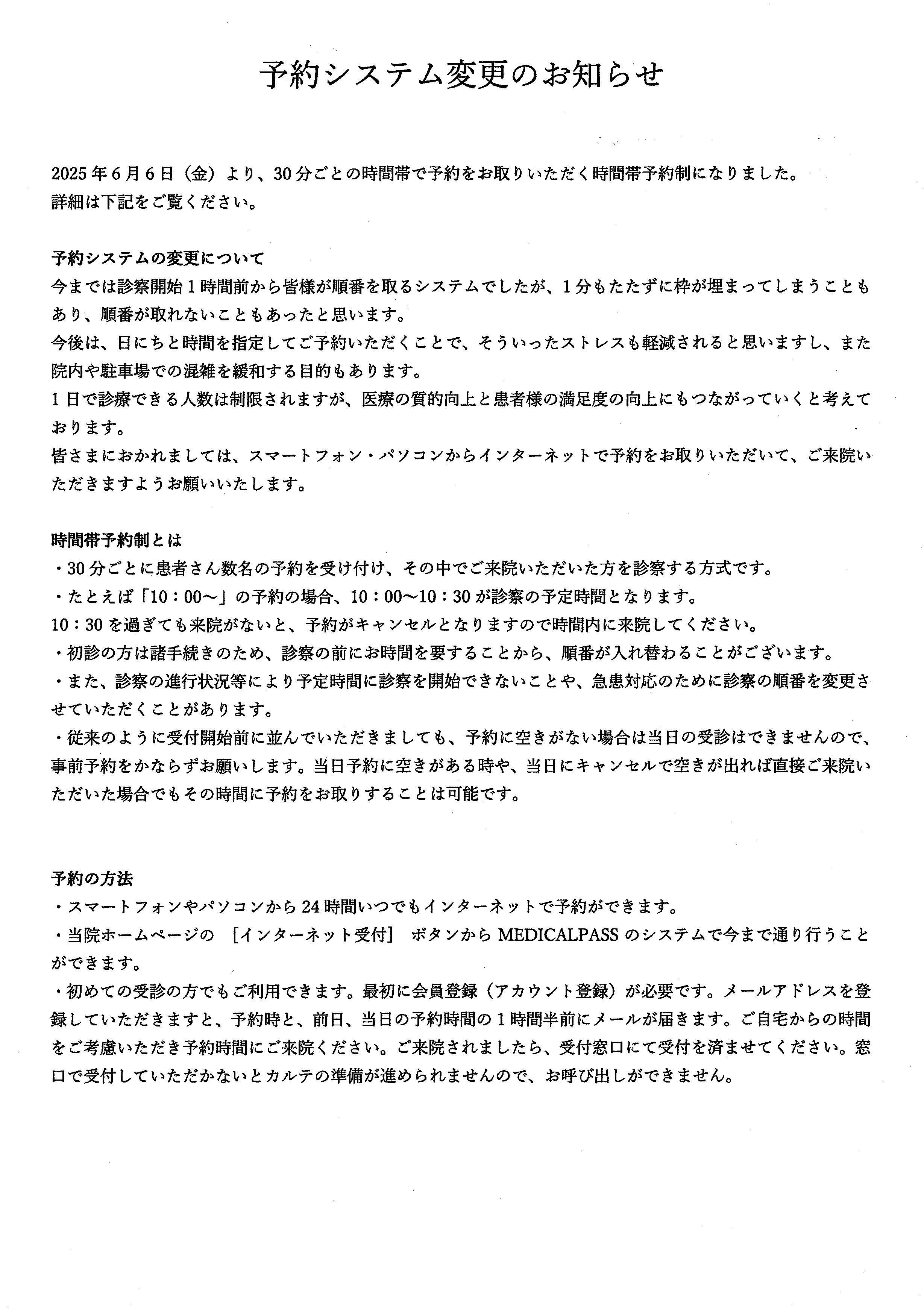 | 2025.07.22(tue) | 重要:受診方法について★2025年6月6日から時間予約制となりました。 |